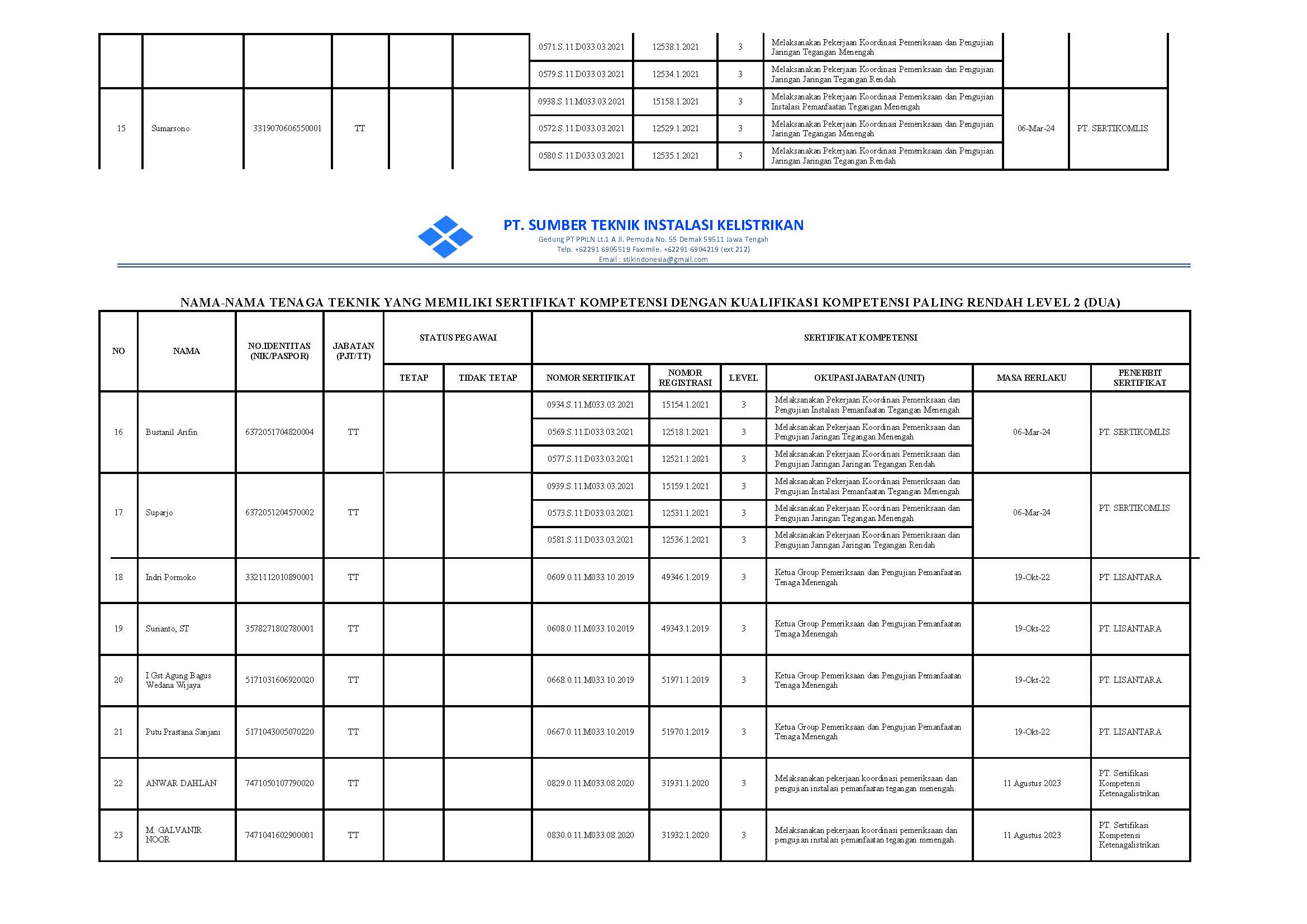 Alamat Gedung PT PPILN Lt. 1 A Jl. Pemuda No. 55 Demak, Jawa Tengah Kontak Email: stikindonesia@gmail.com Telepon: +62291 6905519 Fax: +62291 6904219 (ext 212)